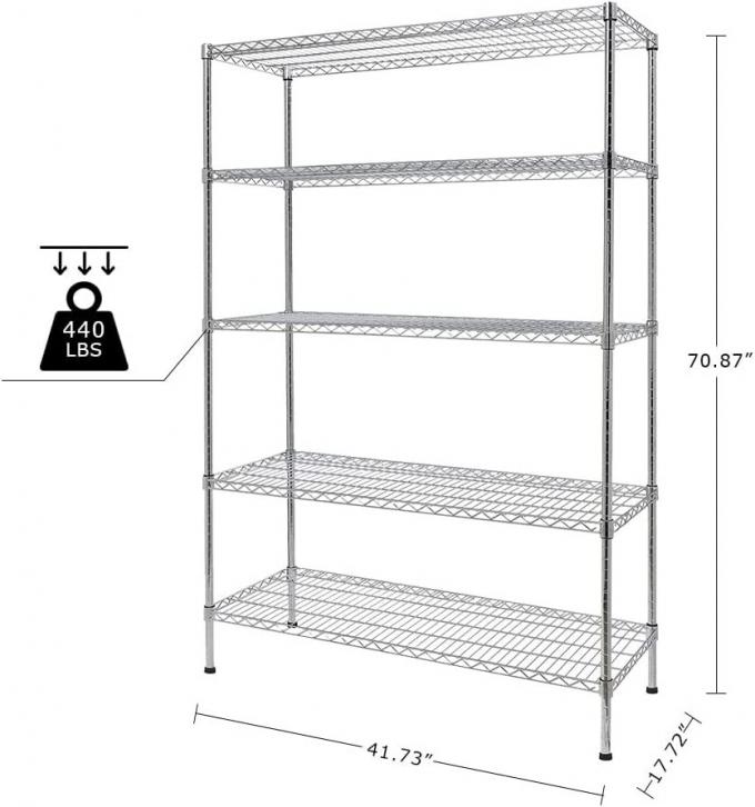 • ทนทานและแข็งแรง: ชั้นเก็บของ 5 ชั้นของเราทําจากท่อเหล็กเคลือบโครมและสายที่ได้รับการรับรอง NSF ความจุหนักสูงสุดของแต่ละชั้นสูงถึง 440 ปอนด์ความ แข็งแกร่ง ของ มัน จะ ทํา ให้ ราง ไม่ สั่น หลัง วาง ของ ใส่.